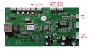 EVA-D901是一塊ARM+DSP構架,專注于網(wǎng)絡音頻傳輸?shù)目刂颇K,具有10/100M 以太網(wǎng)接口,可通過網(wǎng)絡進行單向MP3音頻流和雙向語音傳輸。EVA-D901可直接與外部音頻功率放大器連接,組成網(wǎng)絡音頻廣播終端。也可直接接入麥克風,利用本機的3W音頻功放,組成對講終端。