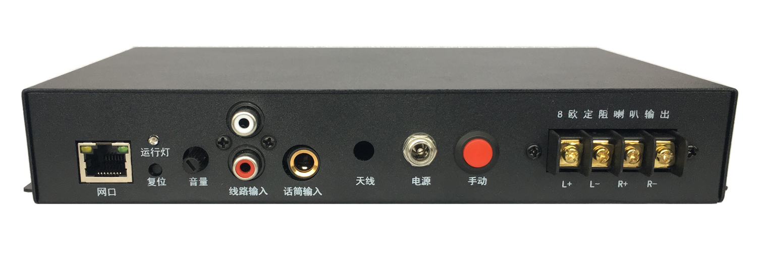 ◆內(nèi)置嵌入式網(wǎng)絡(luò)語(yǔ)音解碼模塊、2*100W/8Ω雙通道輸出功放,,驅(qū)動(dòng)外接音箱工作,設(shè)備運(yùn)行穩(wěn)定性高。